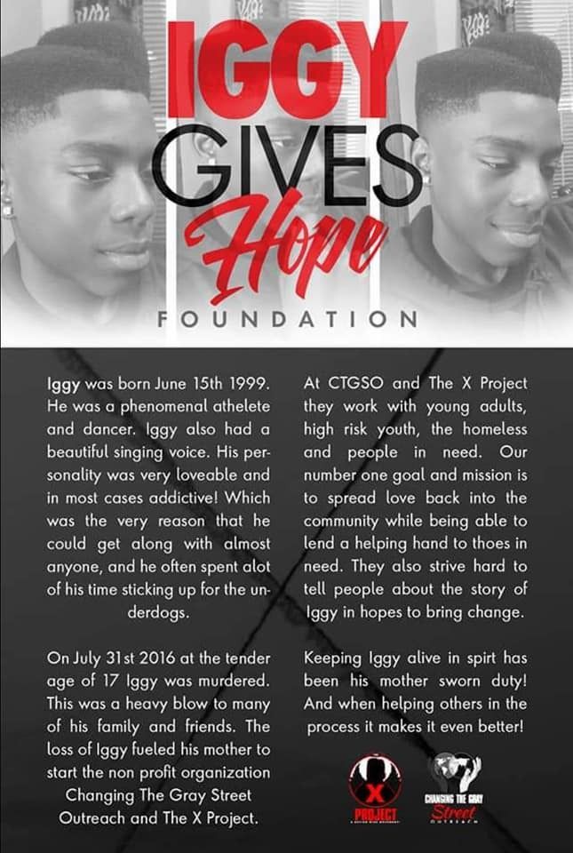 The reality is that no one is exempt from these tragedies. At 2:00am on July 31st 2016 my 17-year-old baby boy was shot and killed by a heinous act of gun violence. The weapon used was illegally obtained by an 18-year-old kid, who, at the time this is being written, will soon be set free. There are no words to describe the amount of pain and grief of a mother realizing her only son will remain 17 FOREVER! So, on behalf of my son whom we called IGGY, I want to begin the fight against gun violence and senseless murders that are occurring everyday across America, leaving families torn and their lives negatively changed forever.